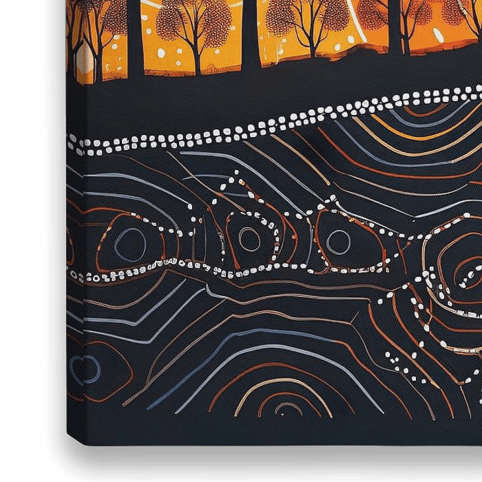 Deze boeiende serie kunst in Australische Aboriginal-stijl is een diep eerbetoon aan het rijke culturele tapijt en de eeuwenoude verteltradities van inheemse gemeenschappen. Door gebruik te maken van de iconische stippenschildertechniek weeft elk stuk op ingewikkelde wijze een complex verhaal samen dat een eerbetoon is aan de Dreamtime,…