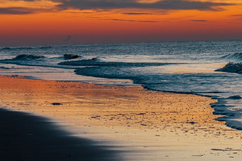 Zonsondergang op het strand in Noordwijk, Holland.