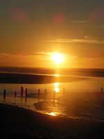 een prachtige zonsondergang op het strand in nieuw zeeland