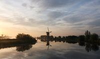 zonsopkomst bij kinderdijk met fraai schilderachtig licht.