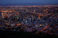 De "mother city" na zonsondergang, Kaapstad, Zuid-Afrika.