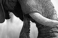 Close up van slurf en slagtand van olifant die aan het eten is in het de delta. Goed is de dikke huid met rimpels te zien van deze machtige dieren behorend tot de big 5.