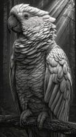 Geef je interieur een unieke, stijlvolle twist met onze prachtige collectie zwart-wit afbeeldingen van papegaaien, kaketoes en ara's.
