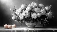 Zwart-wit stillevens van bloemen en fruit in extreem dramatisch licht zijn een fascinerend genre binnen de fotografie en schilderkunst.