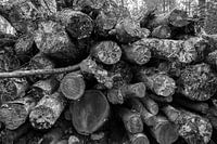 een stapel boomstammen in de bos kan soms ook al eens een uniek beeld weer geven