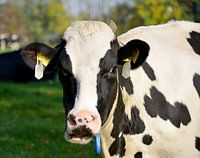 zwartbonte koe buiten in de natuur