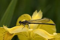 zwarte libel op een gele lis