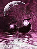 zwarte vogels, schilderen, kunst, schilderij, abstractie, illustratie, magisch, mystiek, Beestachtig, sfeer, kinderen, decoratief, schoonheid, zwart en wit, blauw, spookachtig, mysterieus, spook vogels, zwart. Maan, nacht, maan, roze, roze