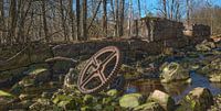 Deel van een waterrad in een droge rivier bedding. De centrale is waarvan het is is buiten werking .